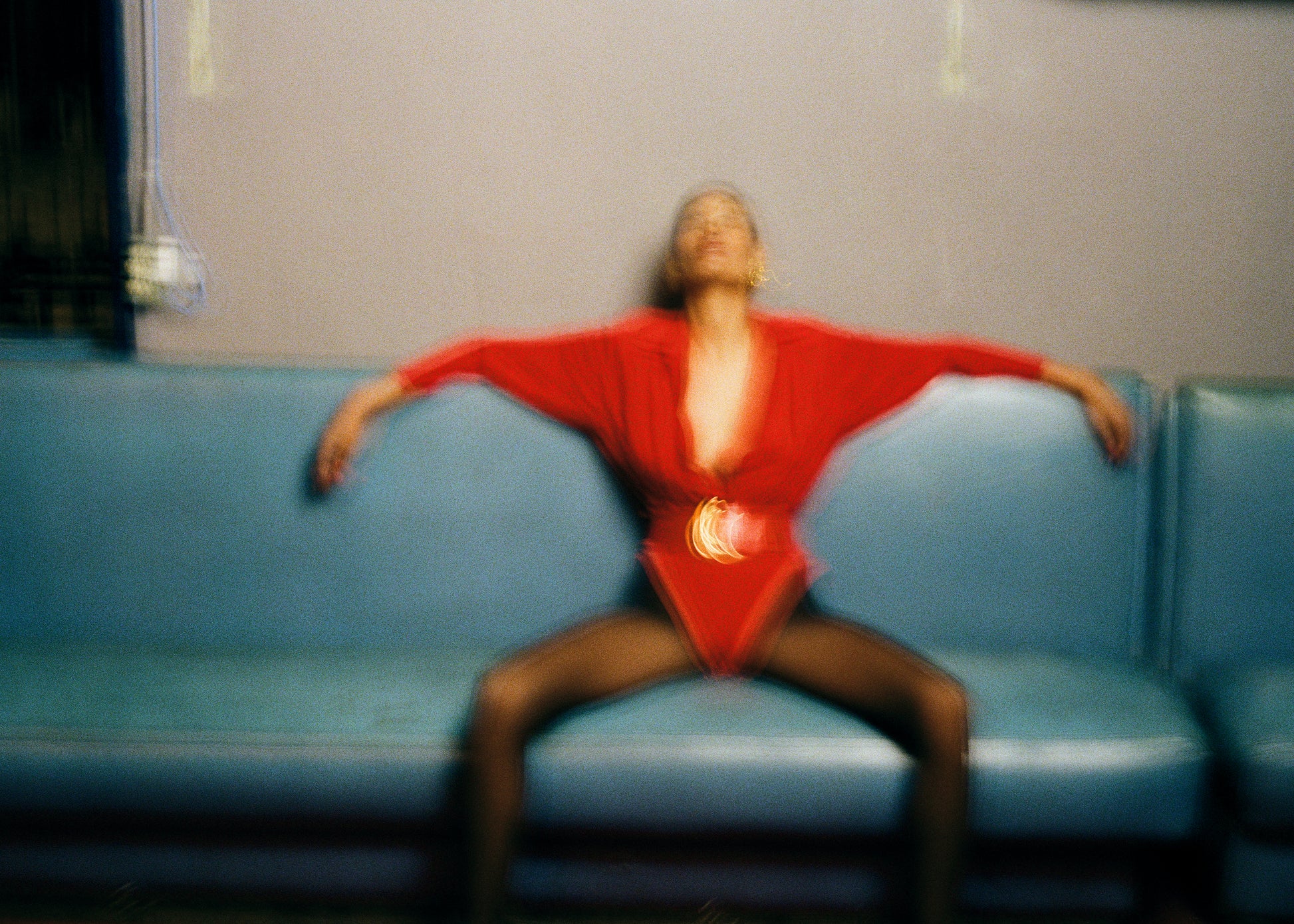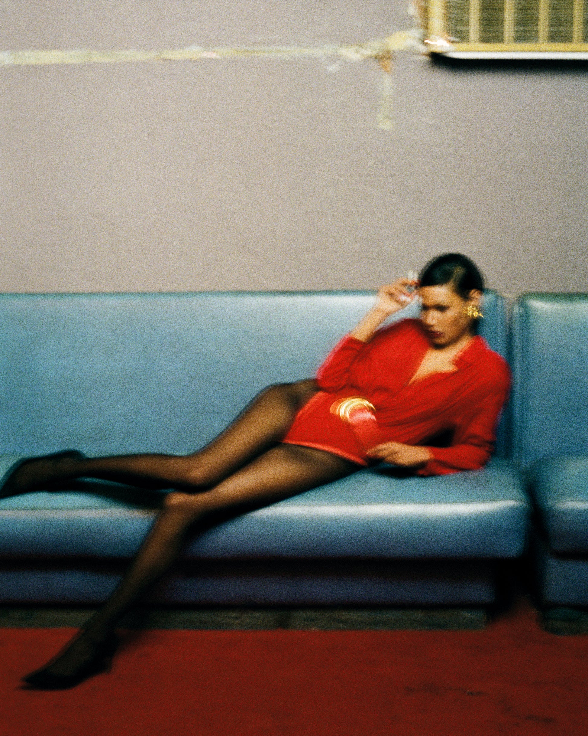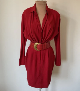 1980s Silk Red Bodysuit and Belted Skirt Set