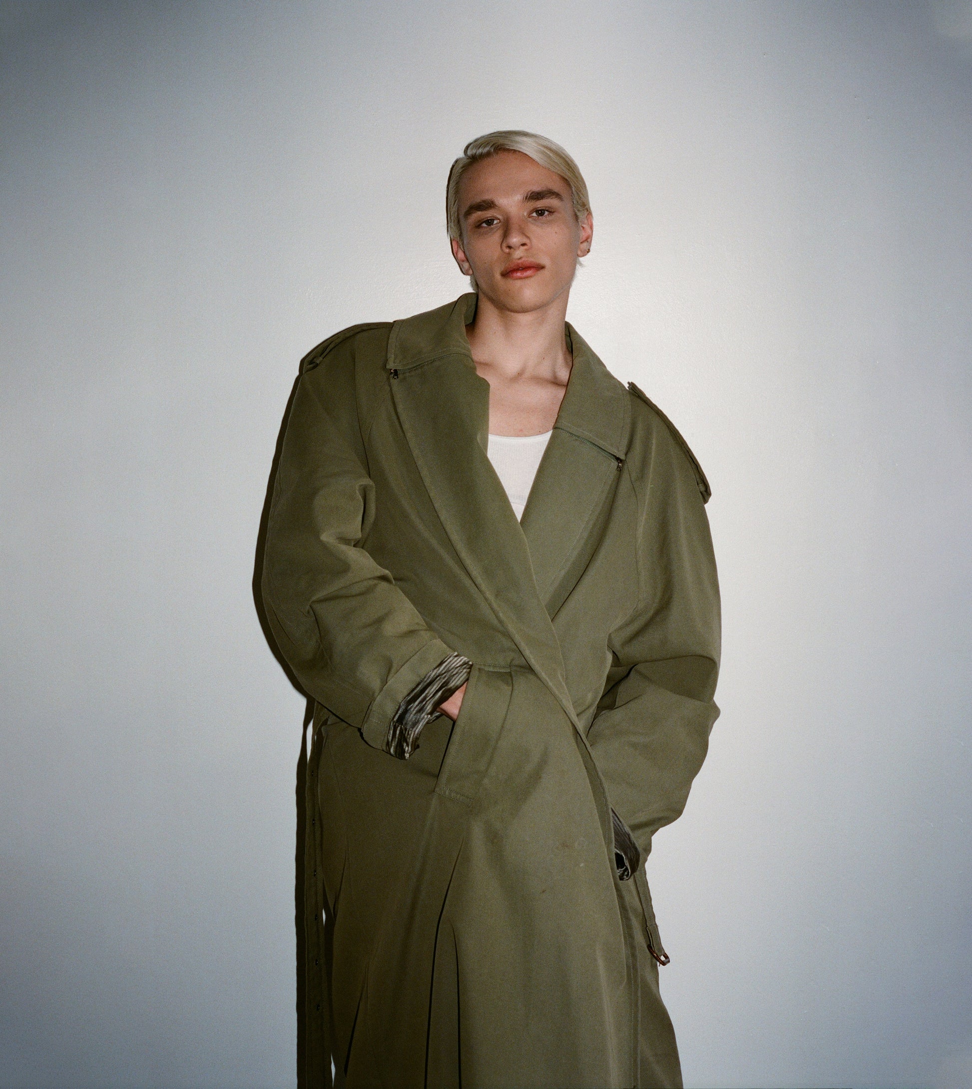 1980's Oversized Khaki Wool Trench Coat