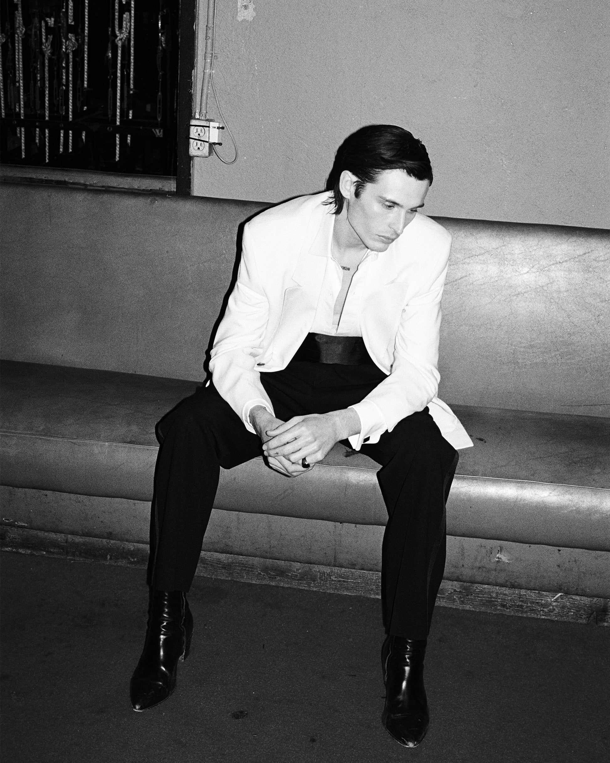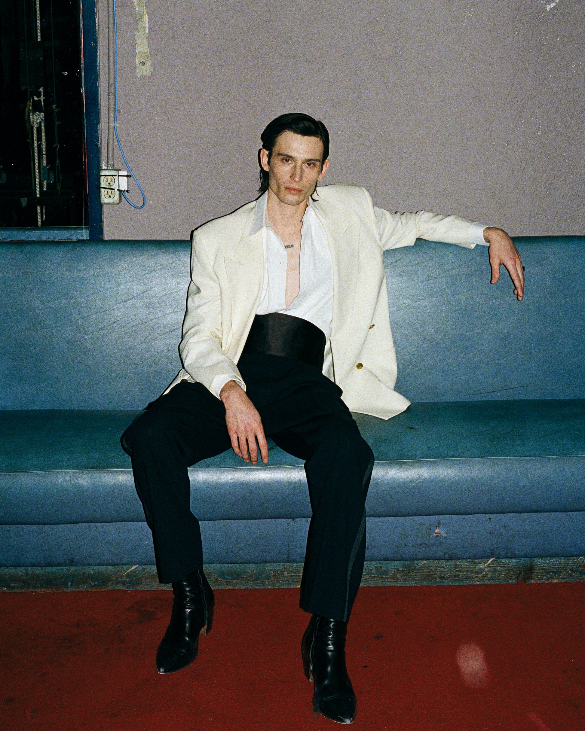 Ivory Double-Breasted Blazer with Monogram Buttons