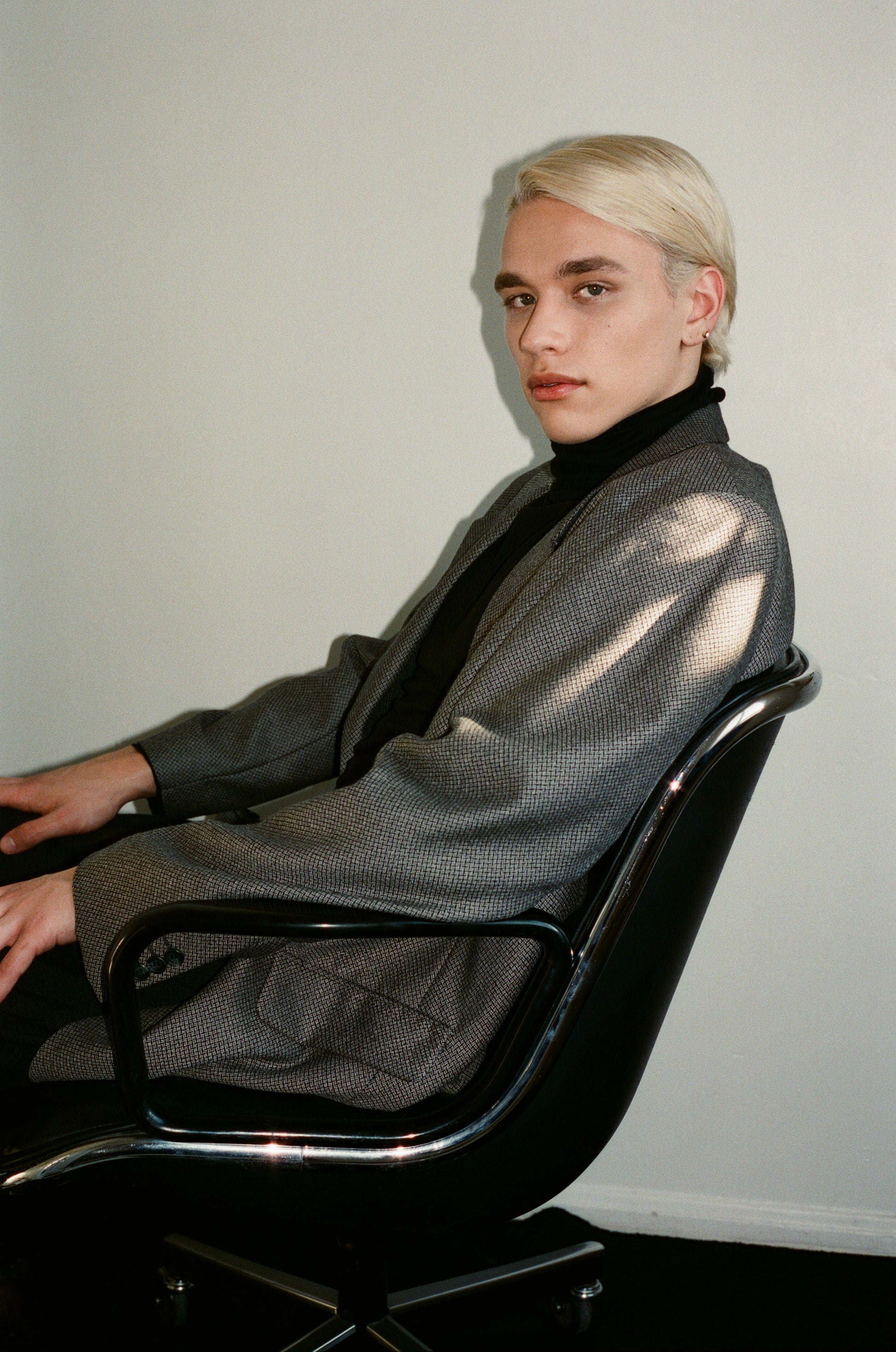Black and White 80s Three Button Wool Blazer
