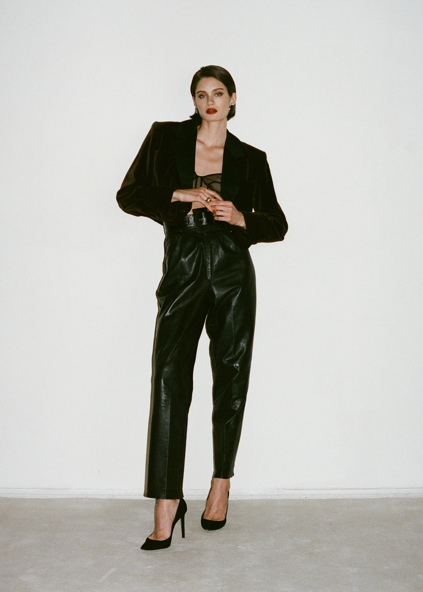 Paired with La Pelle Black Leather Pants and YSL Circle Earrings.