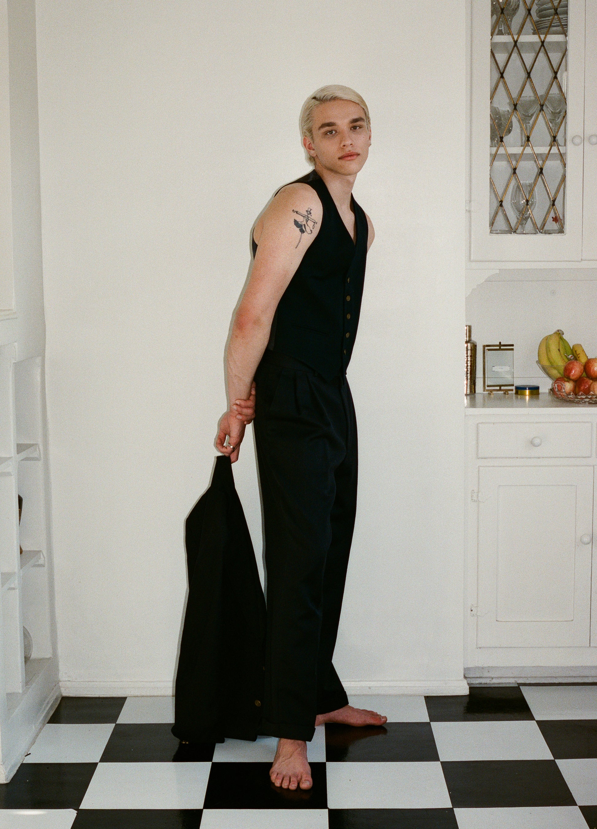 Yves Saint Laurent 70s Mens Navy Vest with Gold "YSL" Buttons.
