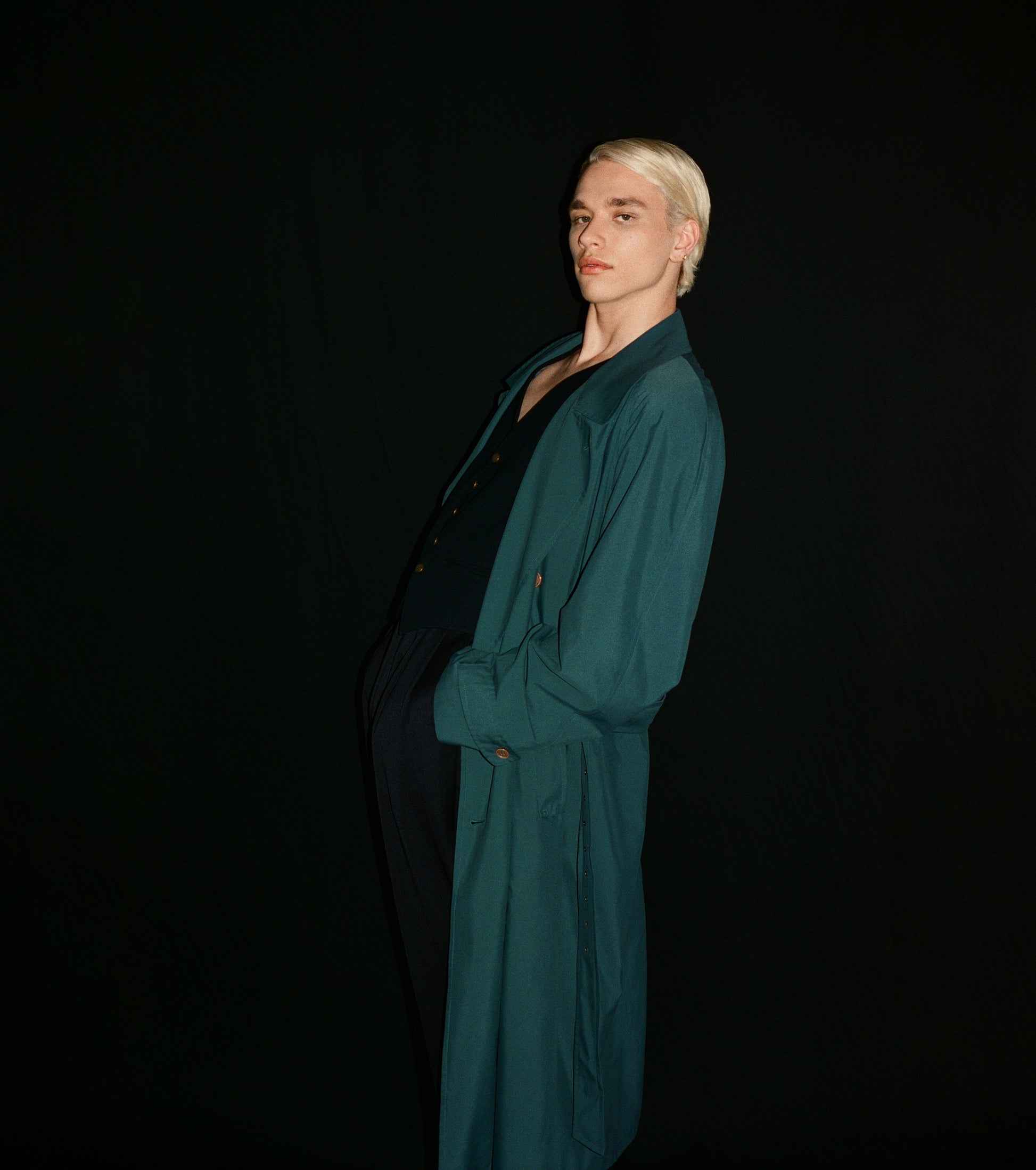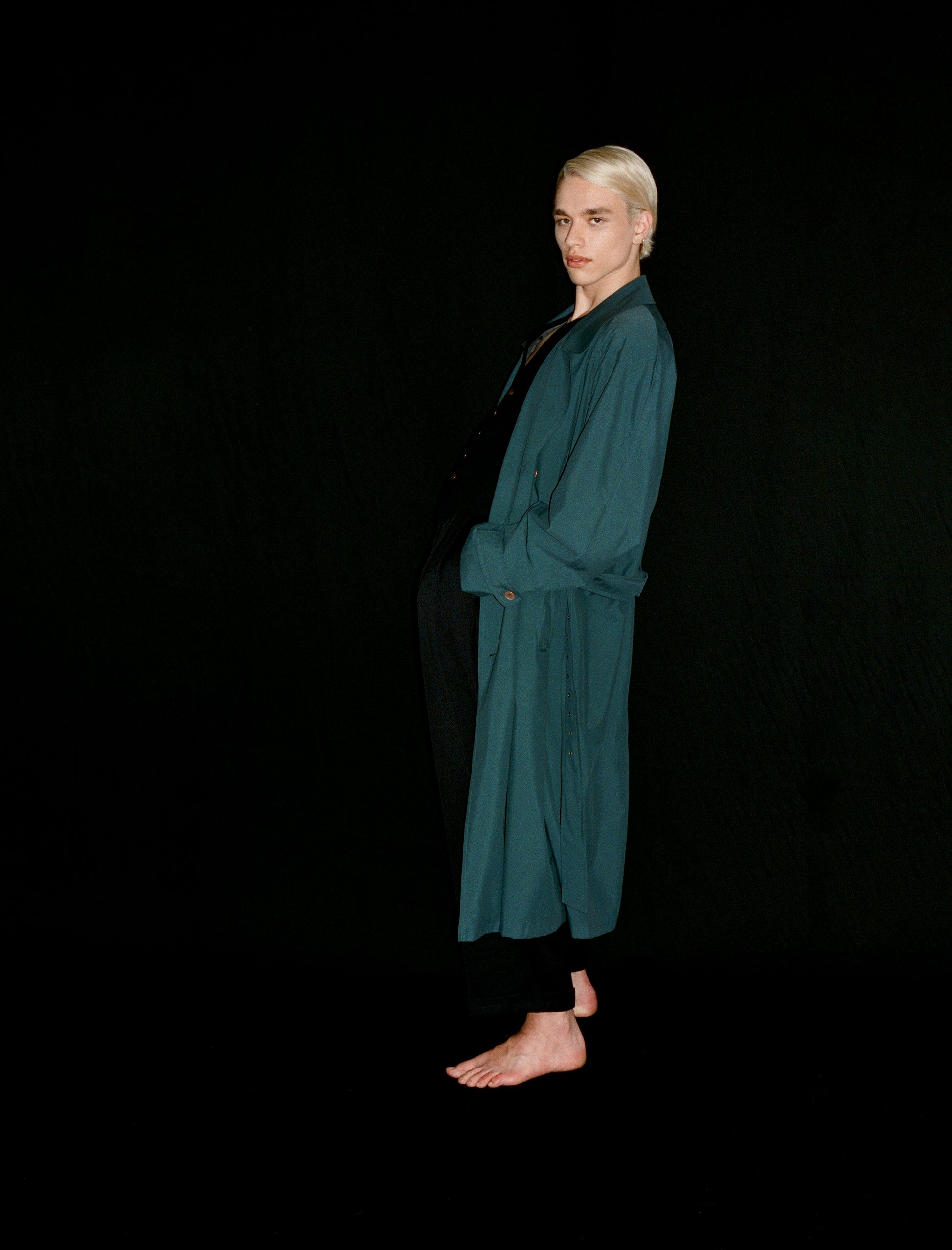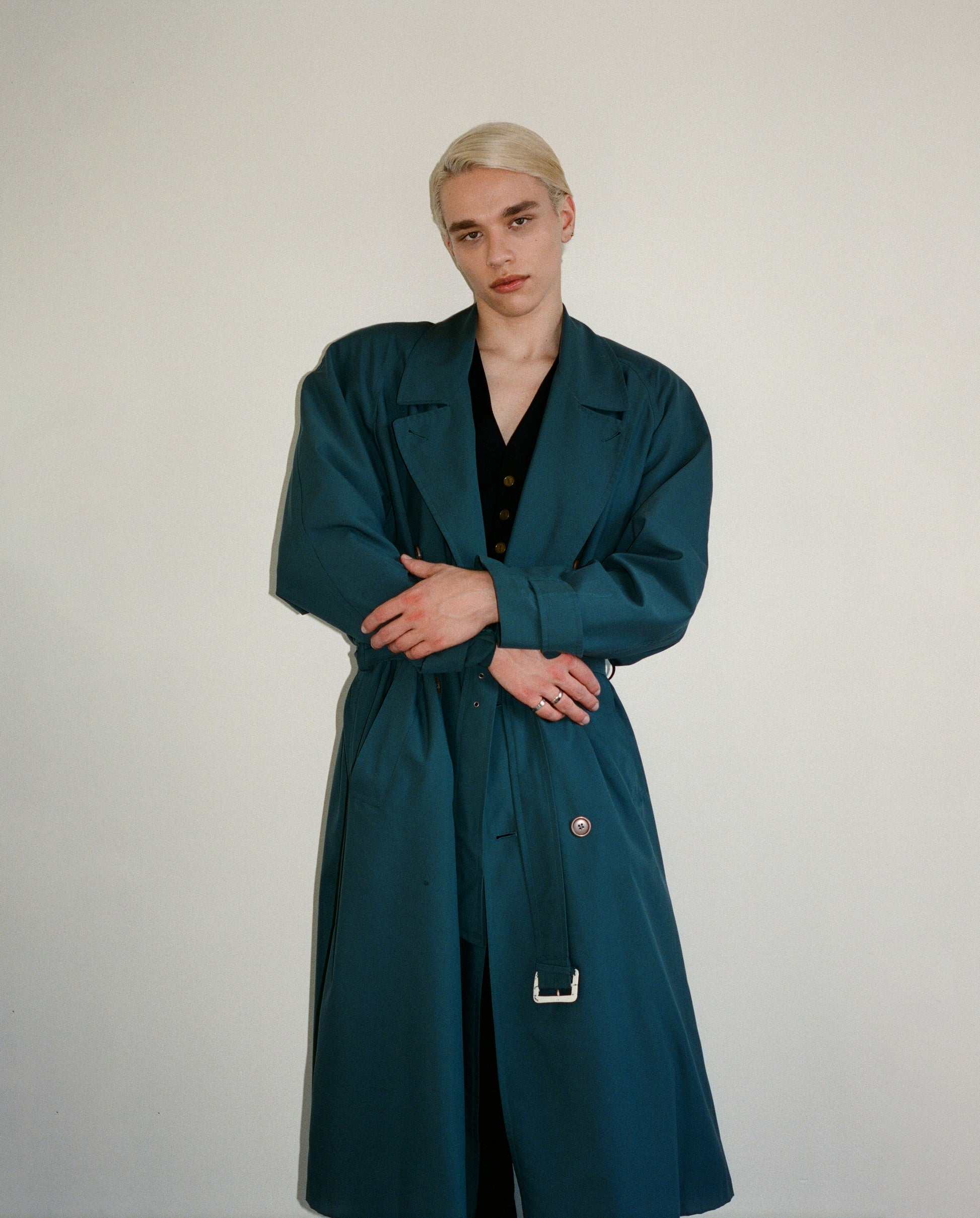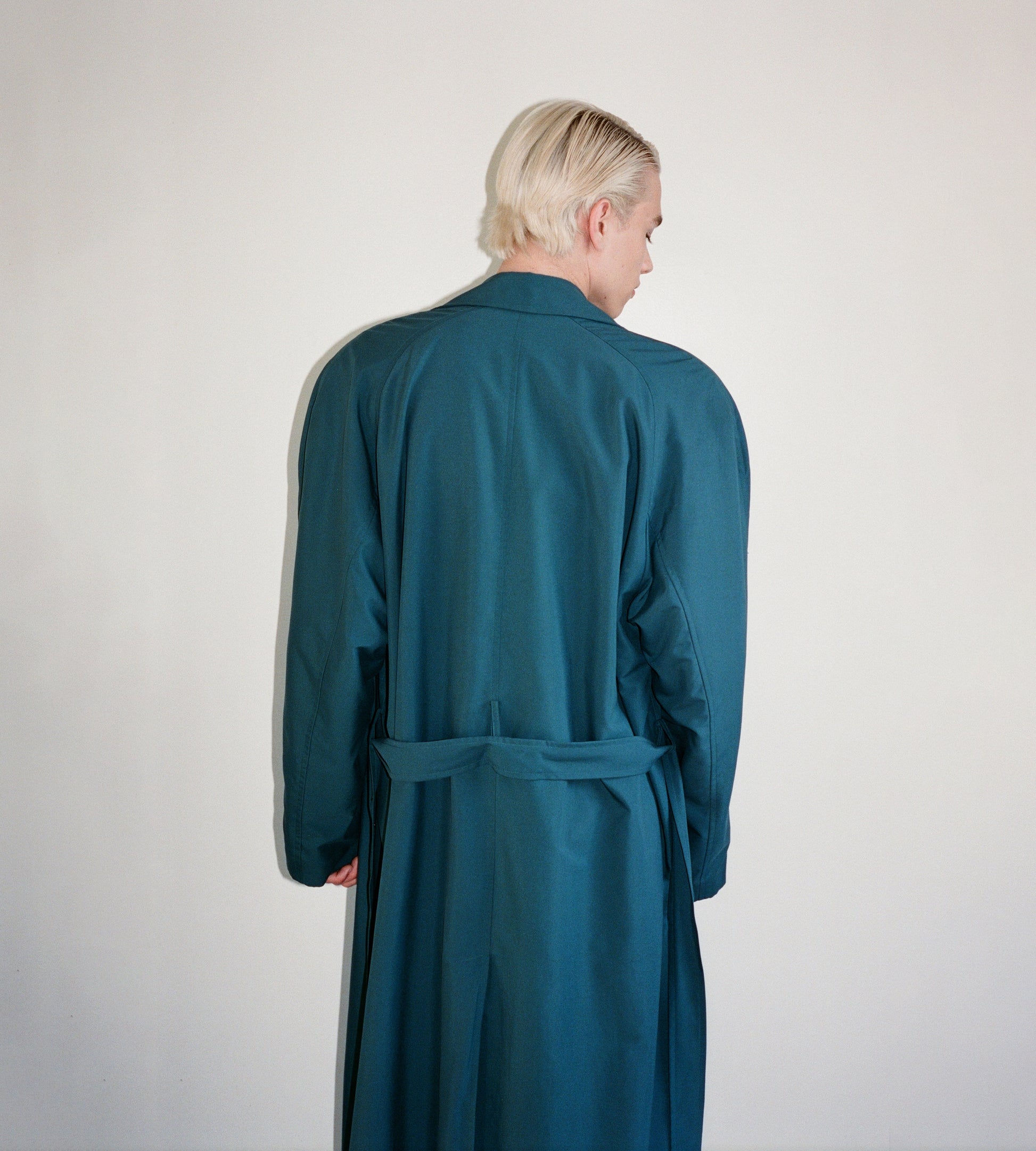 Mallard Color Wool trench Coat with Waist Belt